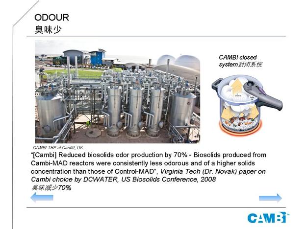 坎比工藝設(shè)計簡潔、布局緊湊,能有效利用現(xiàn)有的污泥處理設(shè)備,并能增強其處理能力、節(jié)省污泥處理的投資,所以既可用于新建污泥處理廠,更適于現(xiàn)存污泥處理工藝的改造。