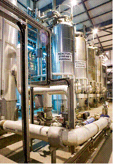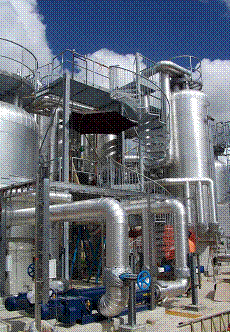 熱水解反應罐(與化工常用的反應釜很類似,但可以蒸汽直接加熱,且蒸汽(11bar左右)從底部進入):它的作用是進行水熱反應。條件為:約6bar,165-170℃,停留時間約半個小時,然后減壓,將壓力減少到3bar左右,將污泥輸送到閃蒸罐。經(jīng)這個罐子后的污泥DS達12%-13%。