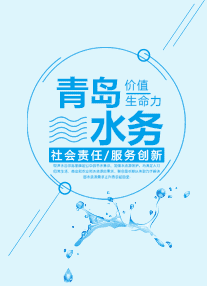 標(biāo)識(shí)以上下結(jié)構(gòu)為主,左右結(jié)構(gòu)為輔,上部以淺藍(lán)色外圓內(nèi)方構(gòu)圖,下部居中配深藍(lán)色黑體“青島水務(wù)”漢字及英文構(gòu)成。上部圖案中心為漢字“水”及灰色英文“water”水字的首字母“W”的變形,直觀地展現(xiàn)了行業(yè)屬性;豎形管道狀“川”字的造型,代表上水、中水、排水三大主要業(yè)務(wù)。中心延伸出的圓形構(gòu)成英文青島的首字母“Q”的變形,體現(xiàn)了水務(wù)集團(tuán)總部的歸屬地,體現(xiàn)了水處理源于自然回歸自然循環(huán)往復(fù)的行業(yè)特性。外圓內(nèi)方構(gòu)圖賦予了健康、穩(wěn)定、安全、環(huán)保、包容、和諧、博大、陽光的內(nèi)涵。下部“青島水務(wù)”漢字及英文莊重、穩(wěn)健,上下部連接,如同一輪朝陽在天際間冉冉升起。